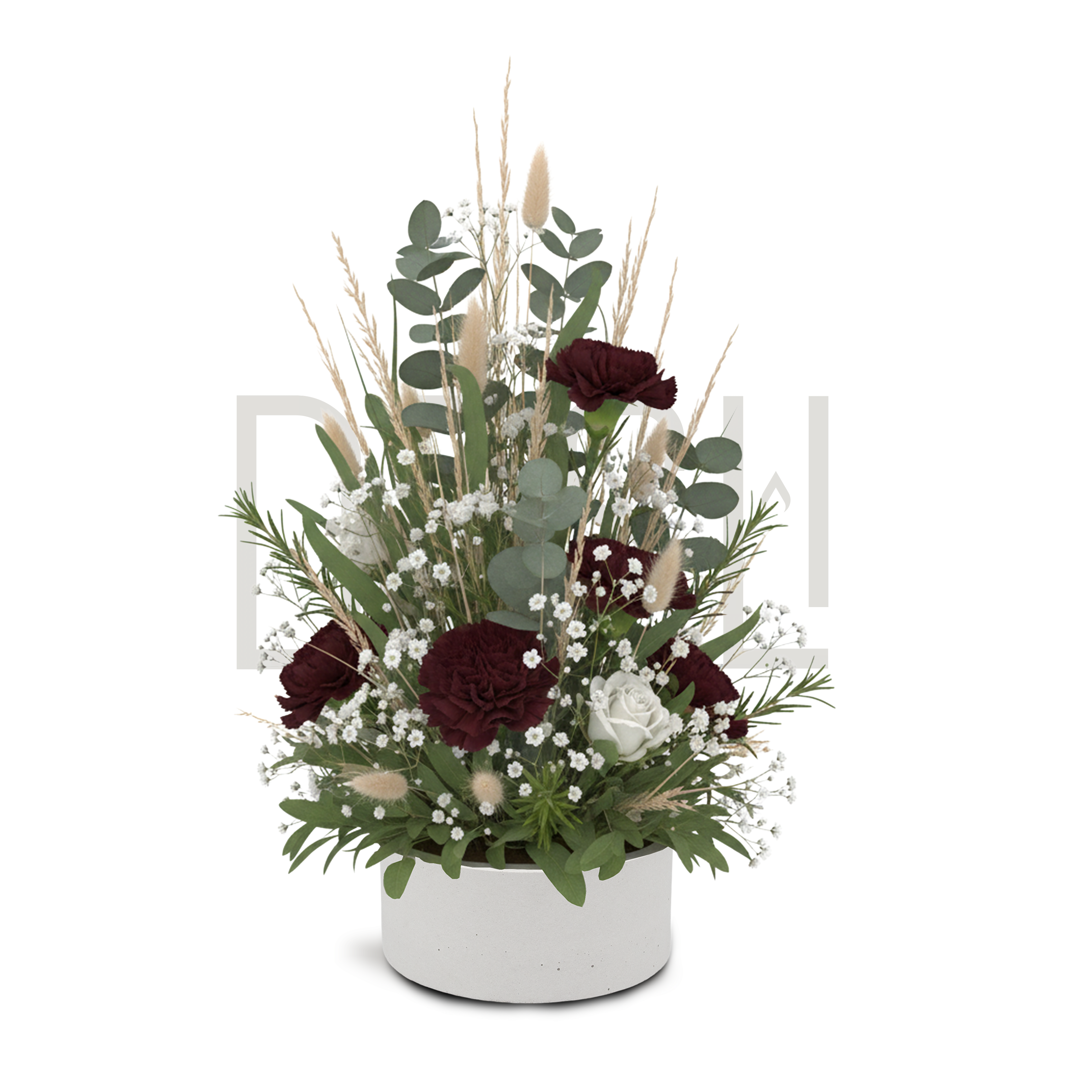 Baza do stroika pasująca designem do zniczy DESLi. Gotowa do przygotowania własnej kompozycji z kwiatów żywych lub suszonych. Baza jest wypełniona gąbką florystyczną OASIS® BIO. Baza jest wielokrotnego użytku, wystarczy dociąć dowolną gąbkę florystyczną i umieścić wewnątrz. Stroik pięknie prezentuje się ze zniczami DESLi.