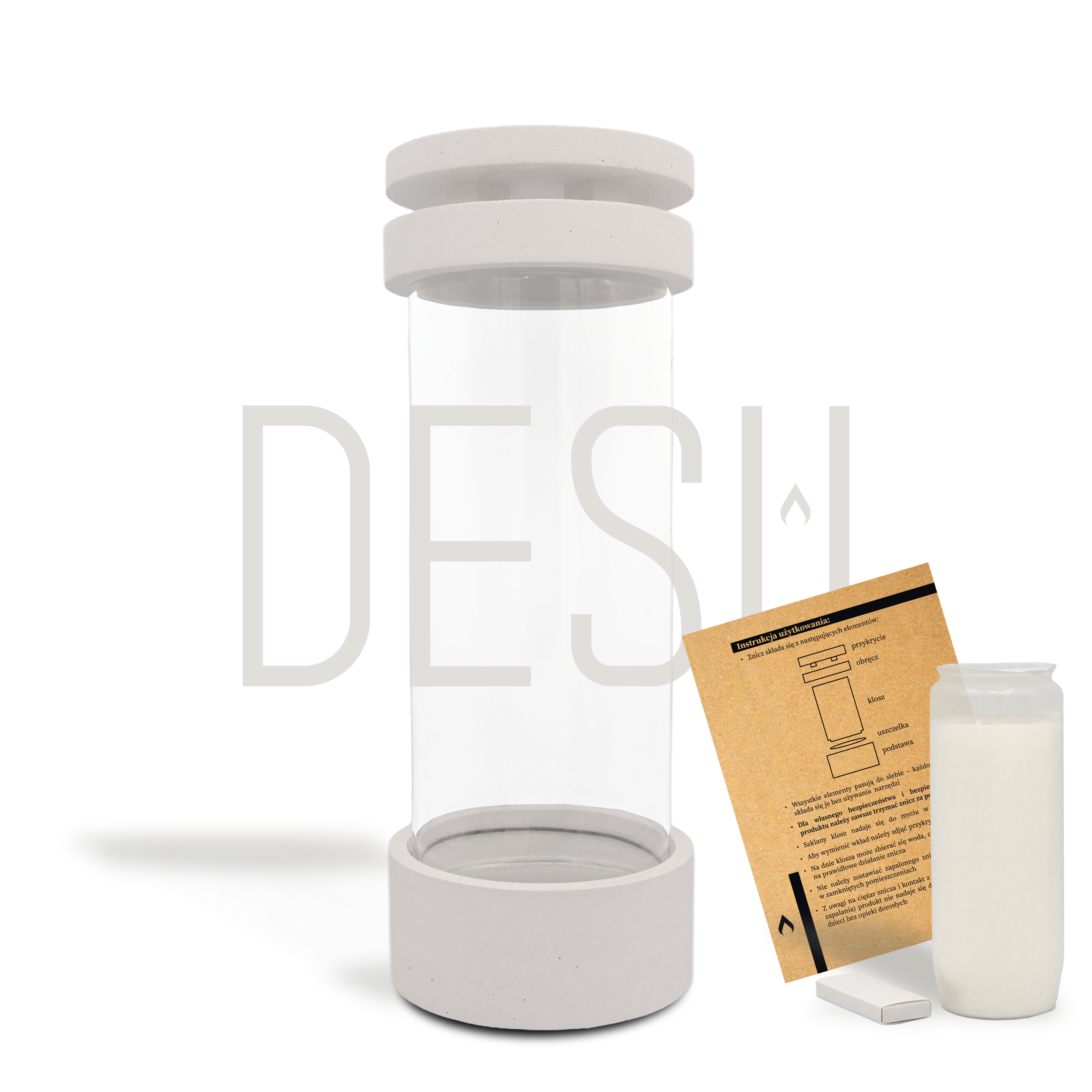 Ze względu na rzemieślniczy charakter wykonania każdy egzemplarz jest niepowtarzalny – znicze mogą różnić się odcieniem i strukturą betonu od wzoru przedstawionego na zdjęciach.