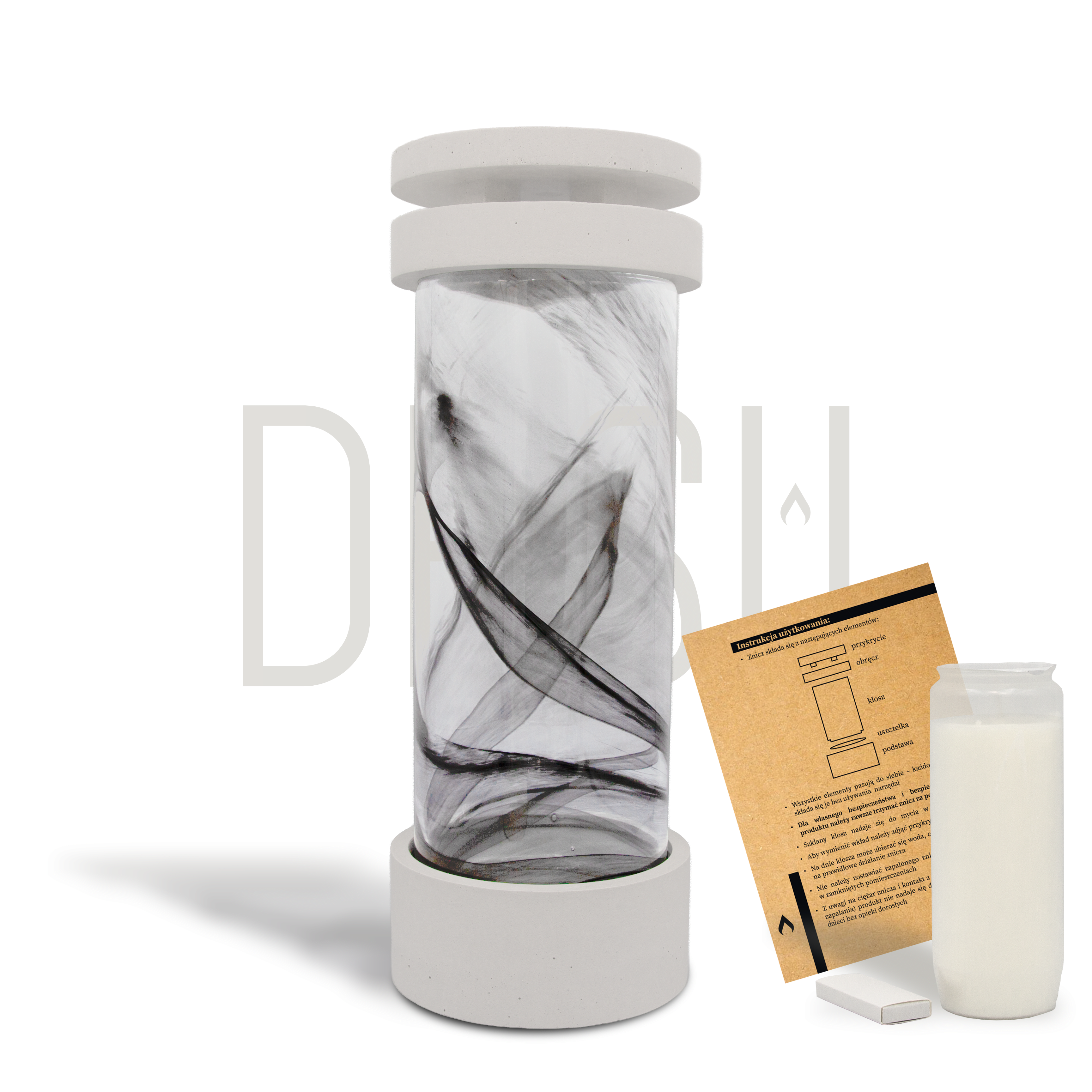 Znicz DESLi | biały beton | szkło czarny alabaster | wysoki