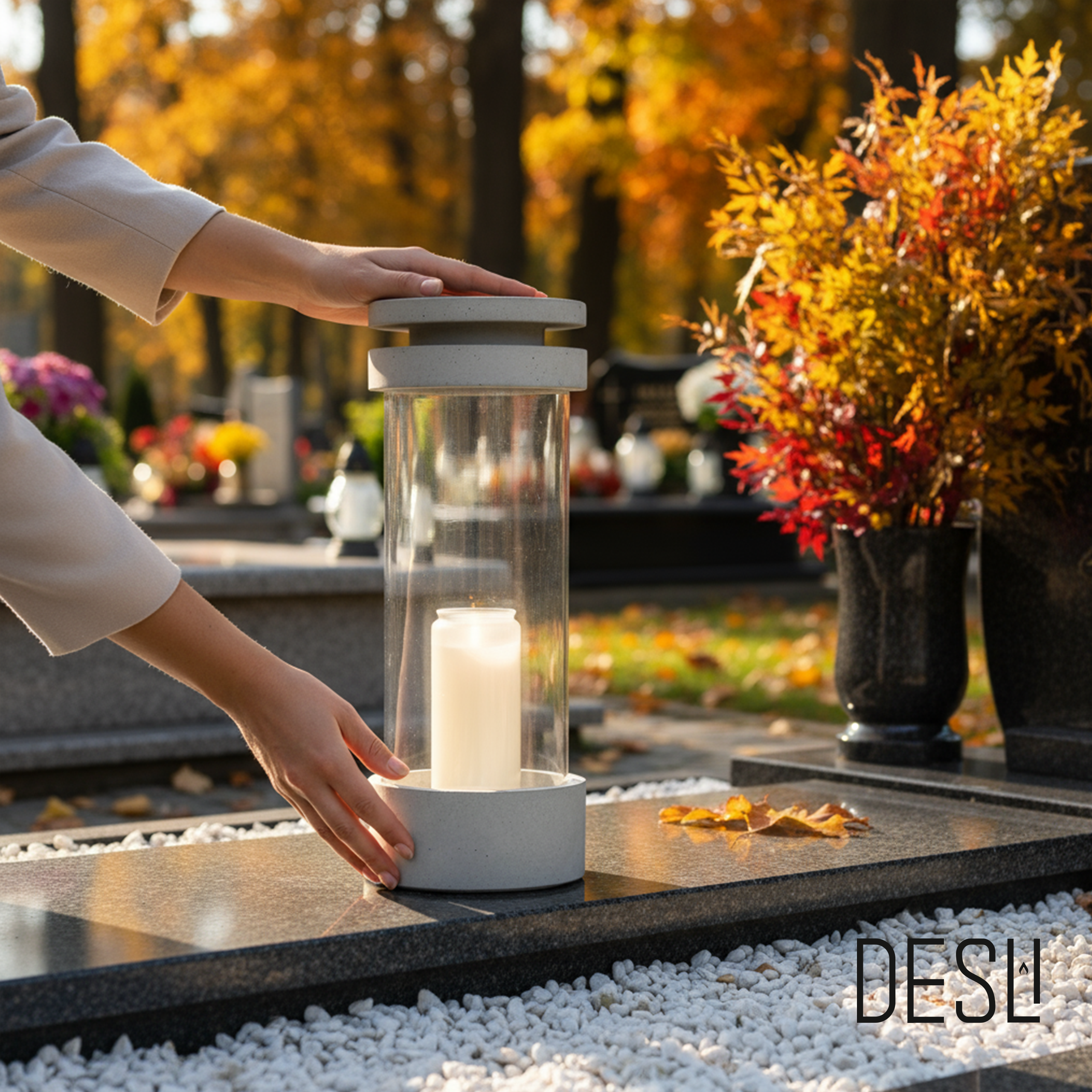 Unikatowy, designerski i ekologiczny znicz DESLi wielokrotnego użytku. Połączenie naturalnego piękna betonu i szkła. Rzemieślnicze, precyzyjne wykonanie oraz dbałość o każdy detal sprawiają, że oddajemy w Twoje ręce ekskluzywny produkt, zachwycający elegancją i ponadczasowością.