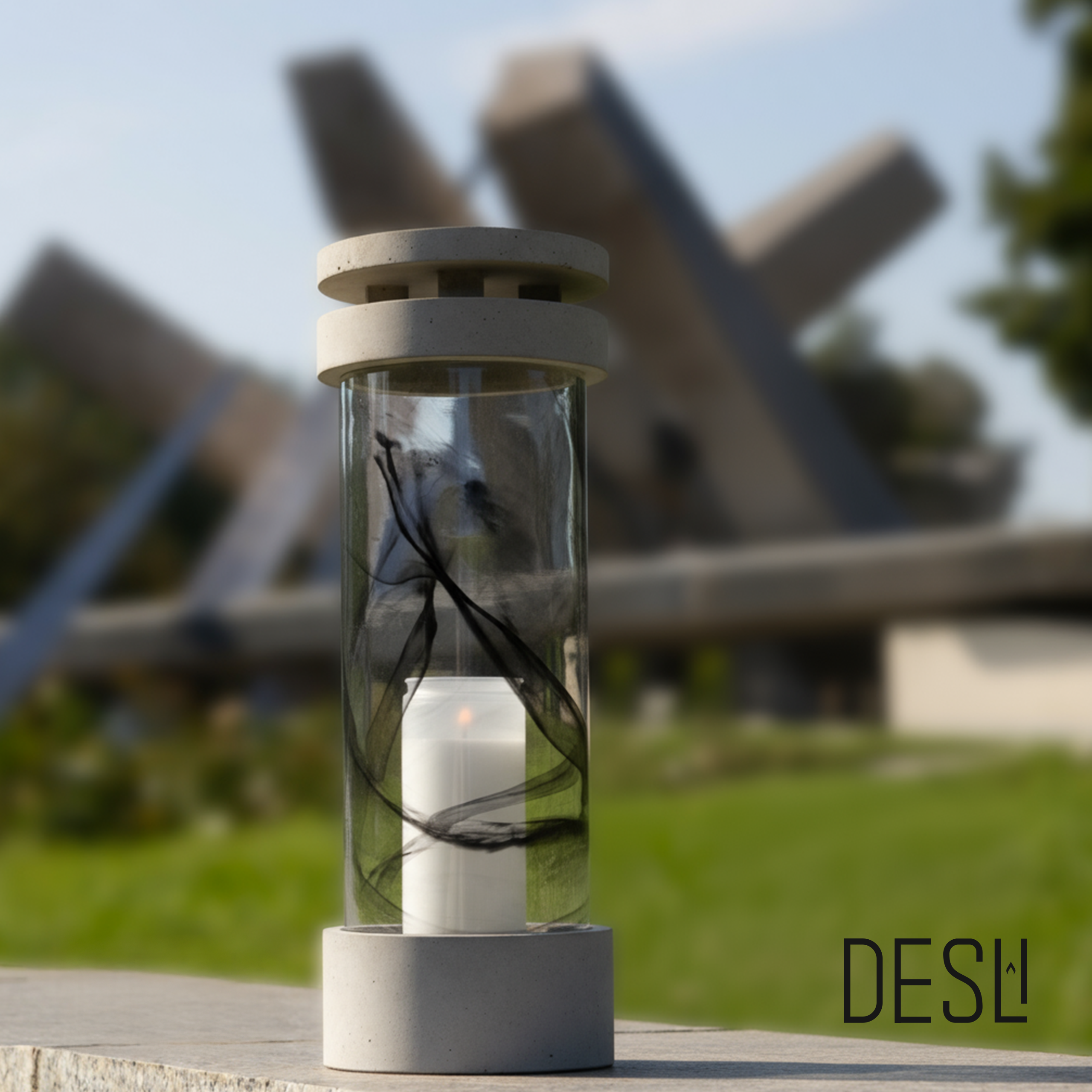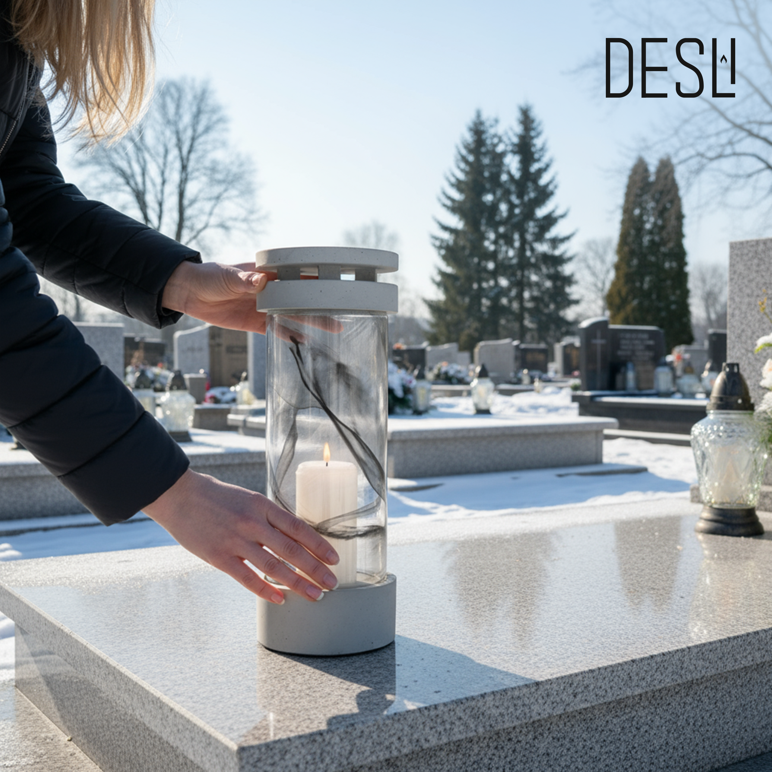 Unikatowy, designerski i ekologiczny znicz DESLi wielokrotnego użytku. Połączenie naturalnego piękna betonu i szkła. Rzemieślnicze, precyzyjne wykonanie oraz dbałość o każdy detal sprawiają, że oddajemy w Twoje ręce ekskluzywny produkt, zachwycający elegancją i ponadczasowością.