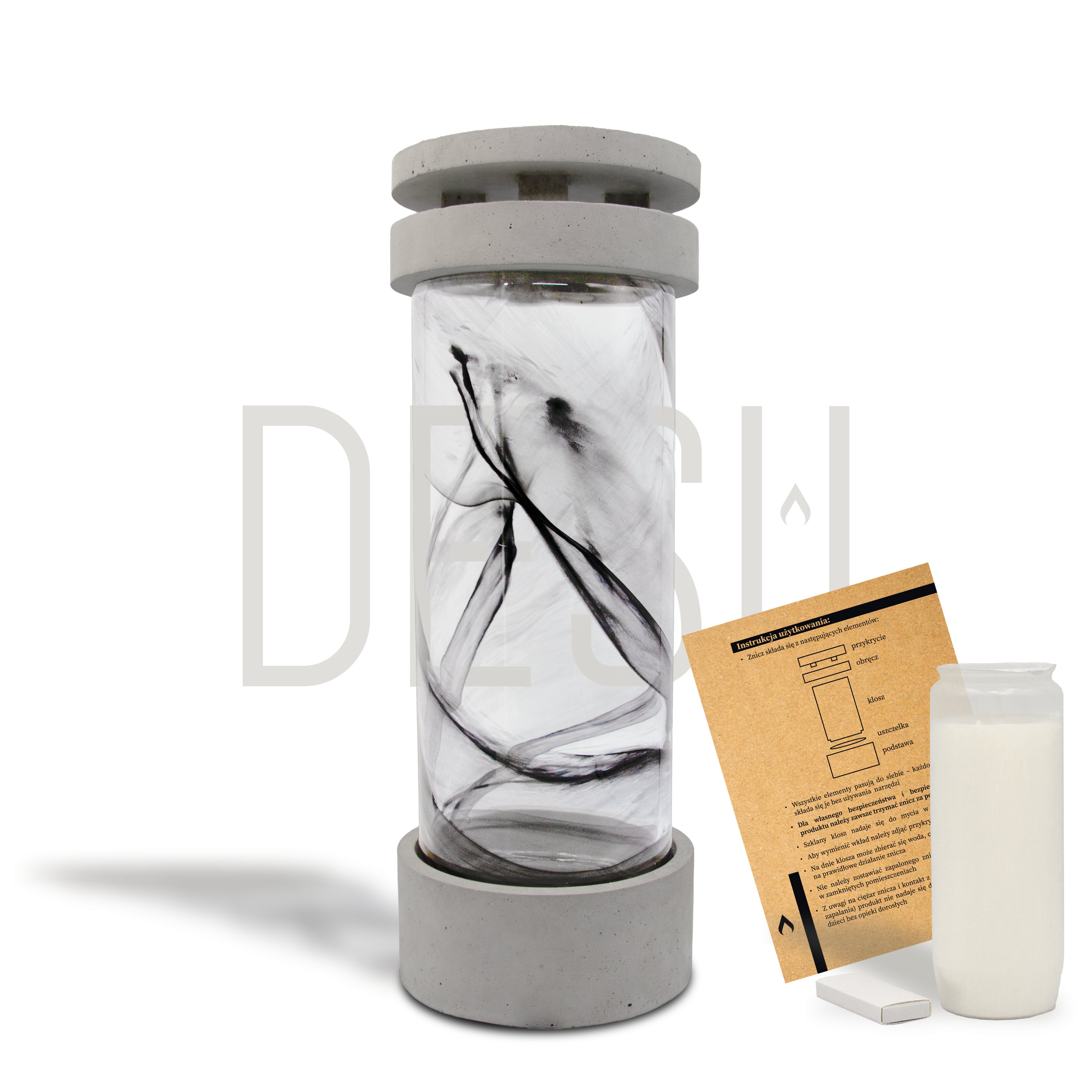 Znicz DESLi | naturalny beton | szkło czarny alabaster | wysoki